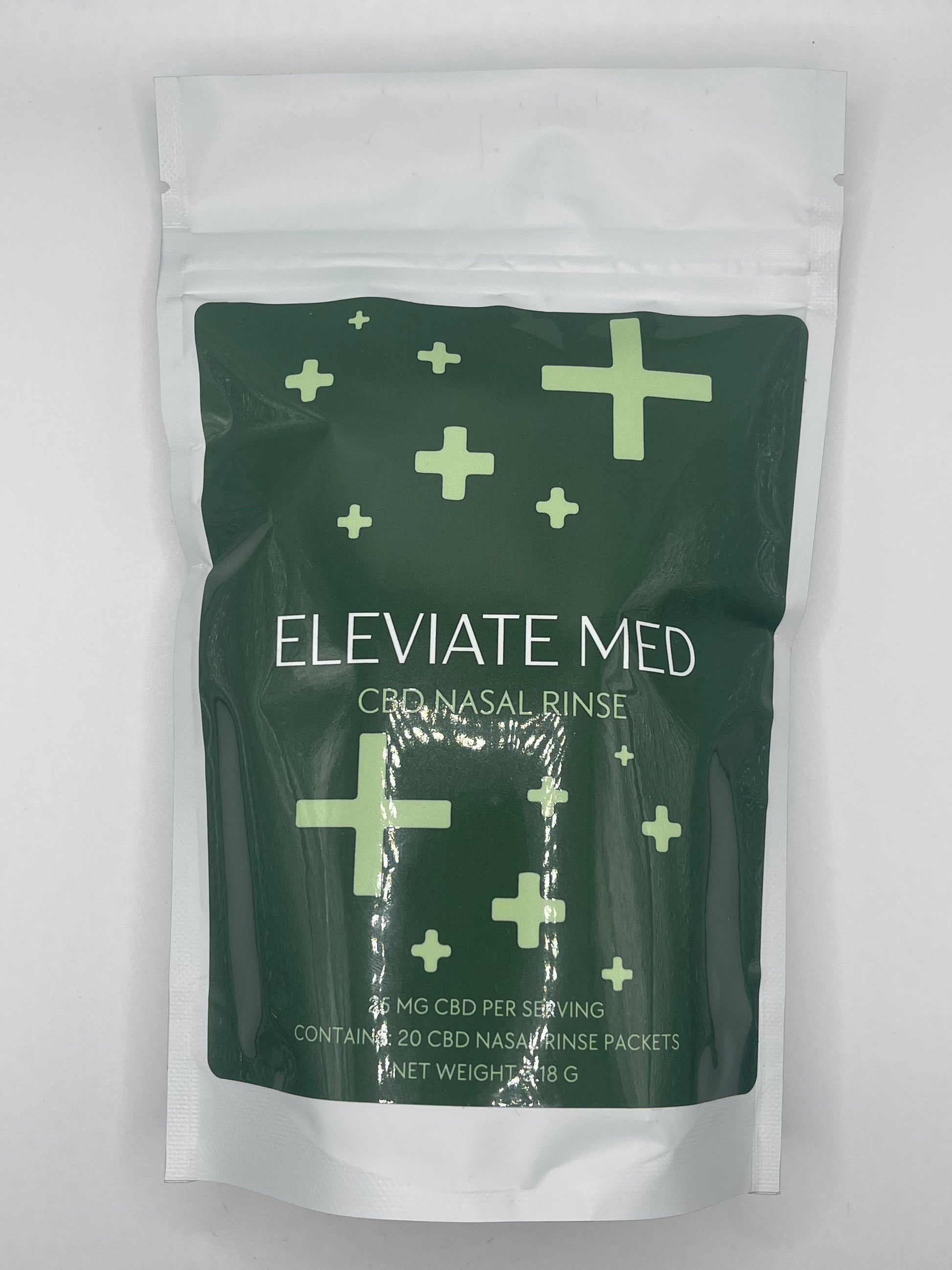 EleviateMed CBD Nasal Rinse is a buffered, saline nasal irrigation containing 25 mg of topical cannibidiol.